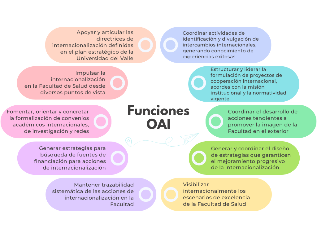 La Oficina de Asuntos Internacionales de la Facultad de Salud fue creada en 1992, como respuesta a la necesidad de centralizar los aspectos propios relacionados con la internacionalización de la Facultad de Salud de la Universidad del Valle, y poder así abordar los retos de la globalización.